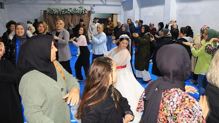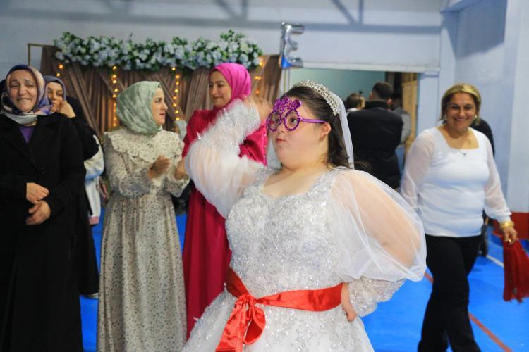Tokat’ın Erbaa ilçesinde down sendromlu Esma Arslantaş’ın (18) gelinlik giyme hayalini, birlikte spor yaptığı hocası ve arkadaşları gerçekleştirdi. Temsili düzenlenen düğünde Esma gelinlik giydi, pasta kesip arkadaşlarıyla müzik eşliğinde doyasıya eğlendi.