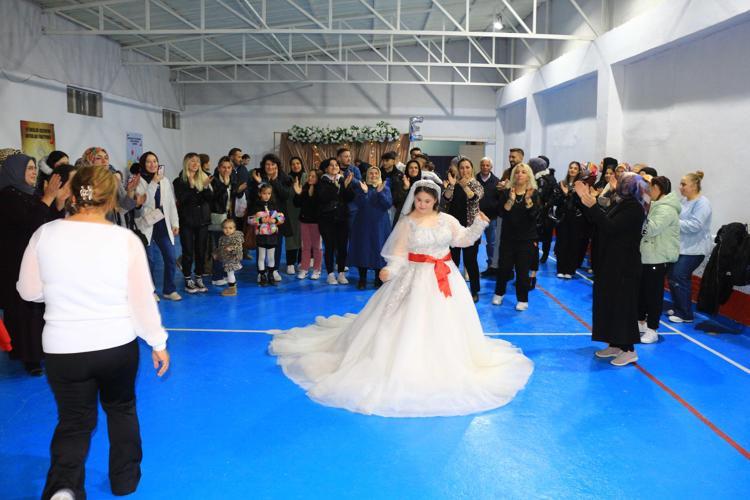 Esma için gelinlik hazırlandı. Saçı ve makyajı yaptırılan, ağabeyi Ahmet Arslantaş (32) tarafından kuşağı bağlanan Esma için düğün konvoyu düzenlendi. Temsili düğünün yapılacağı okulun önünde alkışlarla karşılanan Esma, arkadaşları ve hocası ile birlikte doyasıya eğlendi.