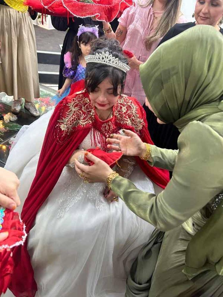 İlçenin Tellidere Mahallesi’nde yaşayan Gülayfer Akgül için hazırlanan temsili düğün organizasyonunda, gerçek bir düğün atmosferi oluşturuldu. Davetiye basımından gelin arabasına, kuaför hizmetlerinden kına gecesine kadar tüm detayların düşünüldüğü organizasyona mahallede geniş katılımla gerçekleştirildi. Gülayfer Akgül’ün uzun süredir düğün hayali kurduğu, sık sık düğün videoları izlediği ve gelinlik giymeyi çok istediği belirtildi. Ailenin ve yakın çevresinin girişimiyle başlatılan hazırlık süreci, kısa sürede mahalleli ve esnafın desteğiyle büyüdü. Organizasyonun öncülüğünü üstlenen Meltem Algın, Akgül’ün gelinlik giyme hayalini öğrendikten sonra harekete geçti. Akgül’e verdiği ‘Sana düğün yapacağım’ sözüyle hazırlık sürecini başlatan Algın, kısa sürede mahalleli ve esnafı bir araya getirdi. Düğün salonundan gelinliğe, kuaför hizmetlerinden organizasyon detaylarına kadar birçok alanda gönüllü destek sağlanmasına öncülük eden Algın, sürecin koordinasyonunu üstlenerek etkinliğin planlı şekilde gerçekleştirilmesini sağladı.