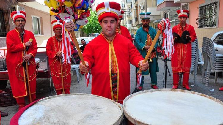Manisa'nın Turgutlu ilçesinde, down sendromlu Ümit Akkuş (30) farkındalık amacıyla görev verilen mehter takımında azmi sayesinde 1 yıl içinde mehterbaşı oldu.