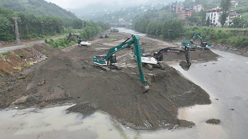 Trabzon, Rize, Gümüşhane ve Giresun illerindeki aşırı yağışlarda riskli derelere anında müdahale edildiğini ifade eden Mehmet Akif Balta, "Değişen iklim koşulları nedeniyle anlık ve şiddeti artan yoğun yağışlar beraberinde sel ve taşkınları meydana getirmektedir. Trabzon, Rize, Gümüşhane ve Giresun illerimize önemli yağışlar düşüyor. Bu yağışlara karşı yeşil karıncalarımız, derelerimizde hummalı çalışmalar yürütüyor. Gerek dere ıslahları ve gerekse bent temizlikleri ile taşkın risklerini bertaraf ediyoruz" diye konuştu.