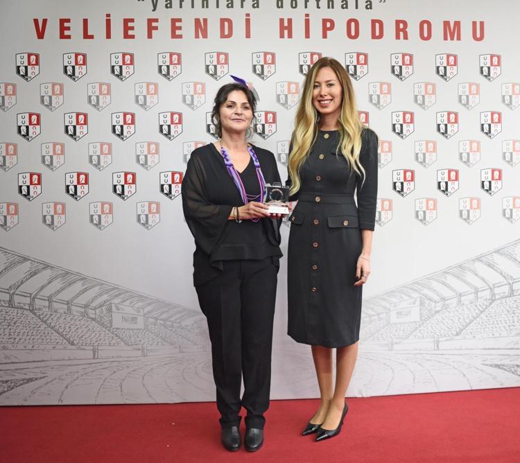 10 atın boy gösterdiği koşuda birinciliğe ulaşan Look at the Star’ın sahibi Birol Bulut'a kupasını İstanbul Vali Yardımcısı Ünal Kılıçarslan ile Türkiye Jokey Kulübü Genel Sekreteri Gülnur Gülerce birlikte verdi.