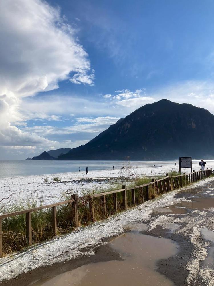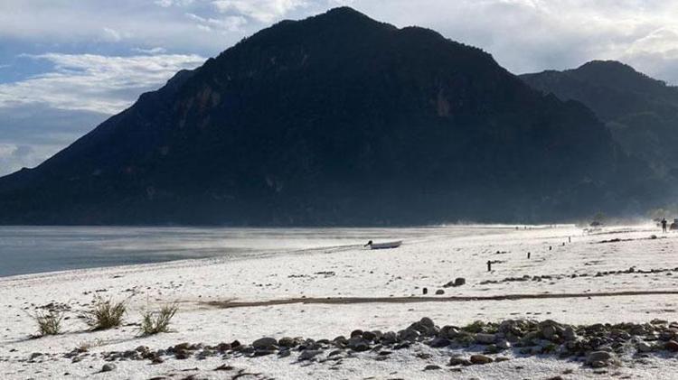 Dünyaca ünlü Çıralı ve Olympos sahili dolu yağışı ile beyaza büründü
