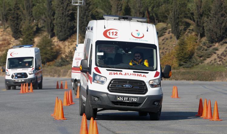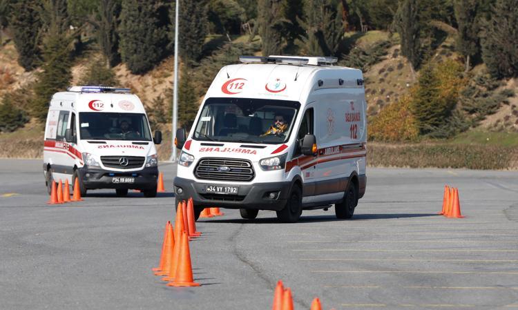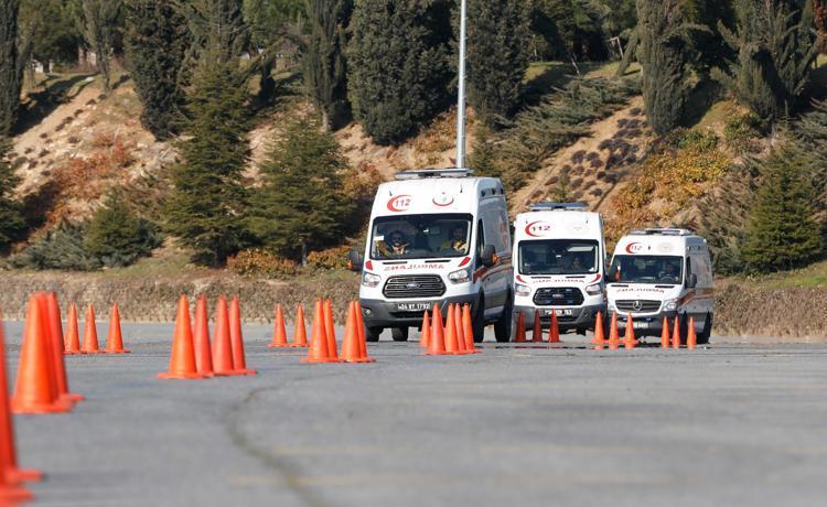 Aynı zamanda paramedik (ambulans ve acil bakım teknikeri) olan 112 ambulans sürücüleri, bu çetrefil trafikte vakalara güvenle ve tam zamanında yetişebilmek için zorlu sürüş eğitimlerinden geçiyor.