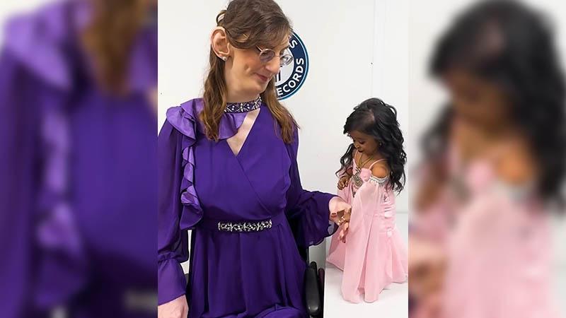Dünyanın en uzun kadını Rumeysa Gelgi ve dünyanın en kısa kadını Jyoti Amge yeniden buluştu