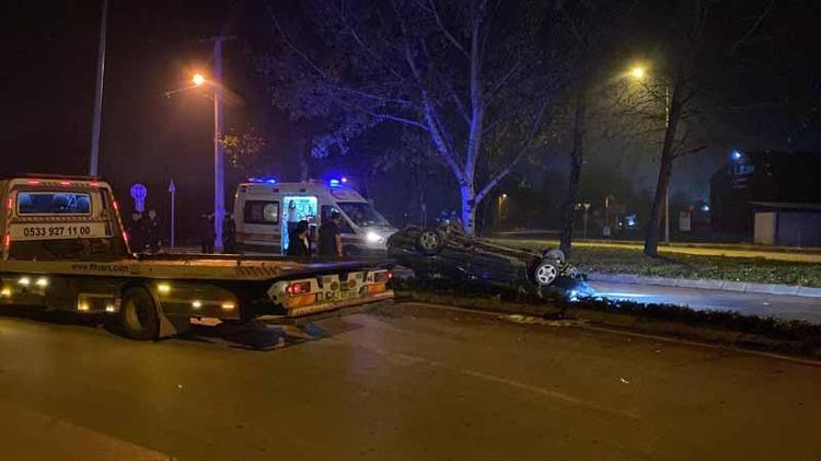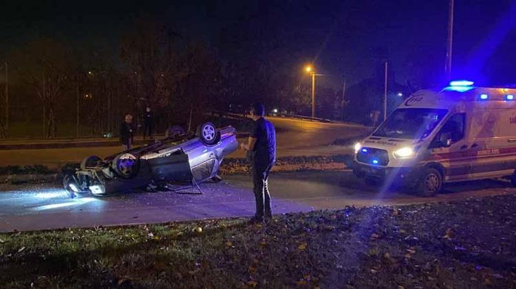Kocaeli'nin Başiskele ilçesinde, polisin 'dur' ihtarına uymayan sürücünün kullandığı otomobilin refüje çarpıp takla attığı kazada 3 kişi yaralandı. Sürücü M.O.Y.'nin 1.82 promil alkollü olduğu belirlendi.