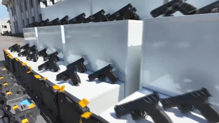Kocaeli’de polis ekipleri tarafından durdurulan minibüste 60 tabanca, 60 silah kutusu, 120 şarjör, 120 harbi (fırça) ve 120 kabza aparatı ele geçirildi.