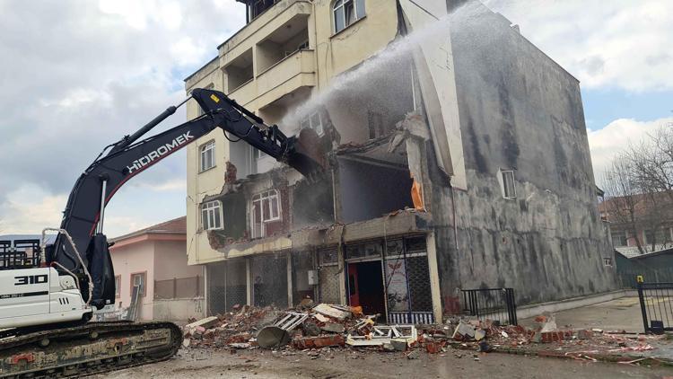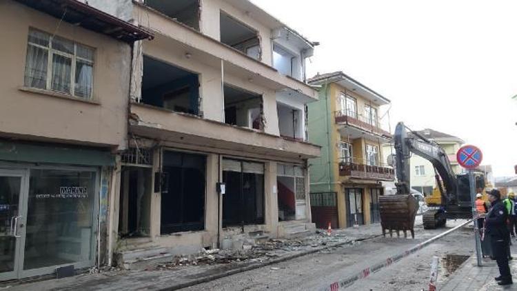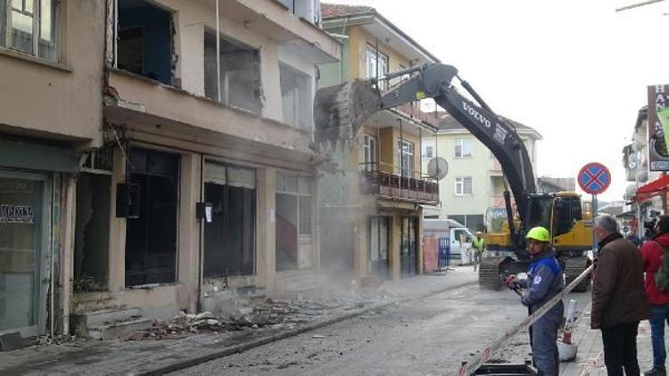 Düzce’de acil yıkım kararı verilen binaların yıkımına başlandı