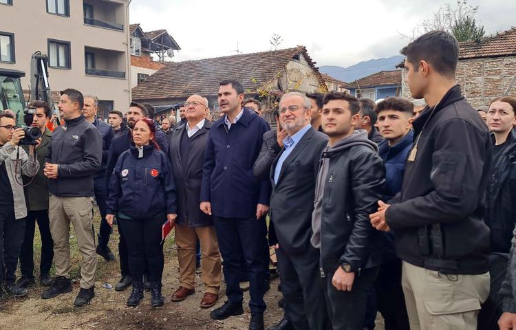 Çevre, Şehircilik ve İklim Değişikliği Bakanı Murat Kurum, Düzce'de depremde ağır hasar aldığı için yıkım kararı verilen evlerde incelemelerde bulundu.