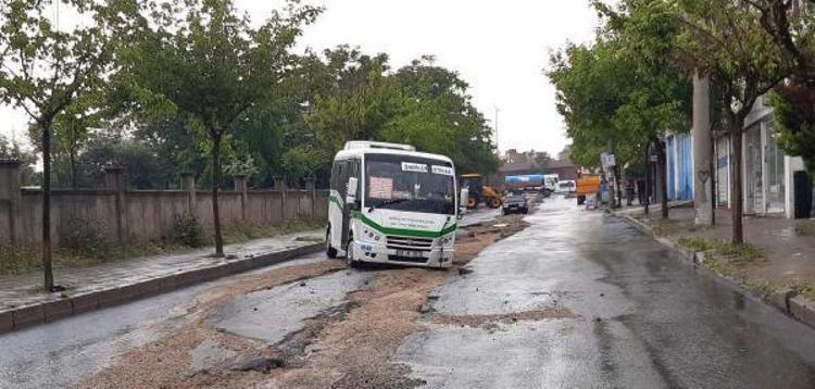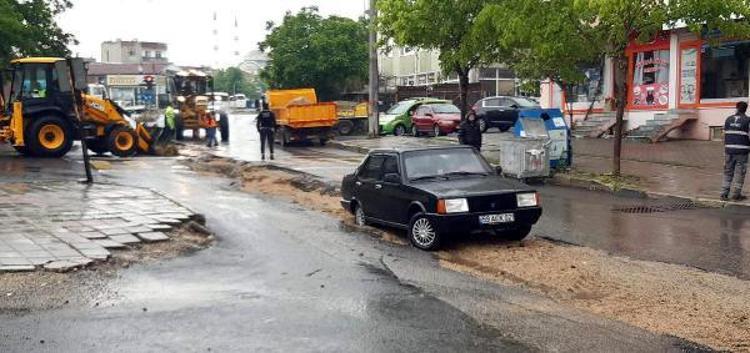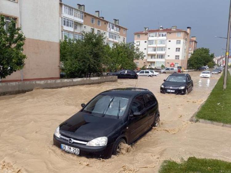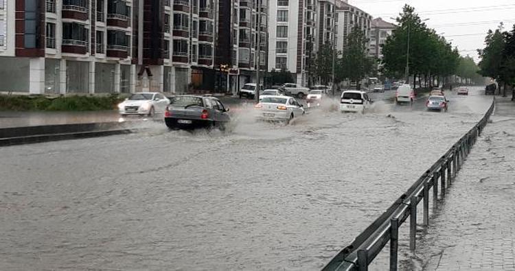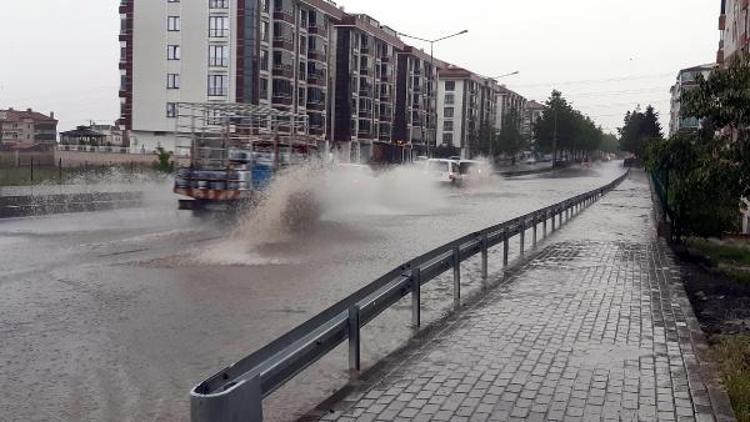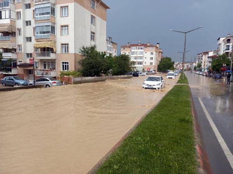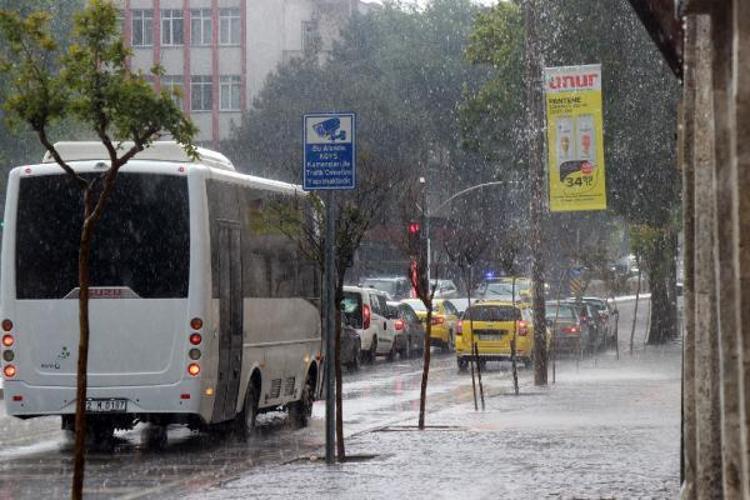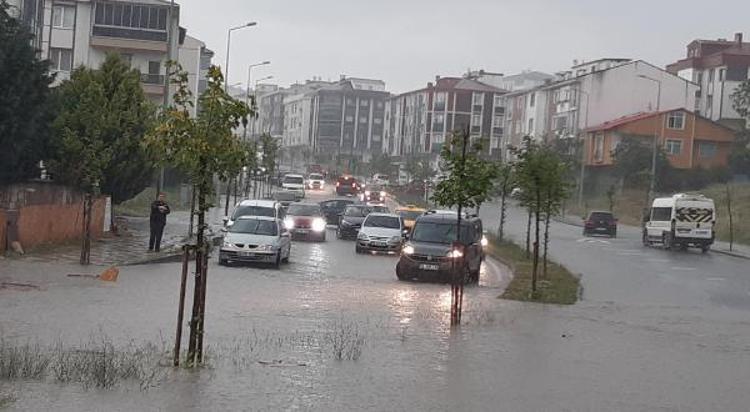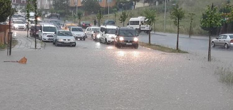Sağanak nedeniyle cadde ve sokaklarda su birikintileri oluştu, sürücüler trafikte zor anlar yaşadı.
