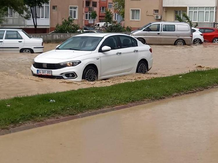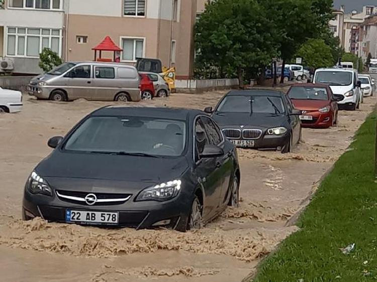 Edirne'de yaklaşık 45 dakika etkili olan yağışta, cadde ve sokaklar göle döndü.