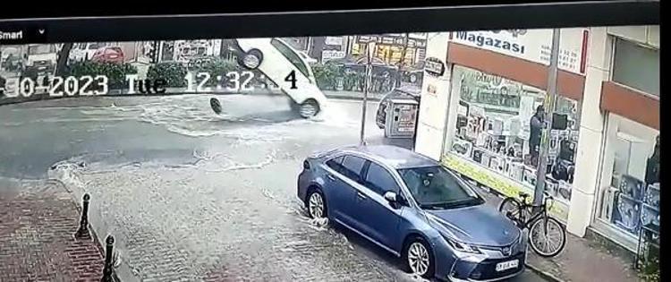 Çarpmanın etkisiyle havalanan araç, yeniden düz şekilde yere düştü.