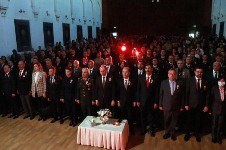 Şehitliğe çelenk sunumuyla başlayan törende saygı duruşu eşliğinde saygı atışı yapıldı, İstiklal Marşı okundu.
