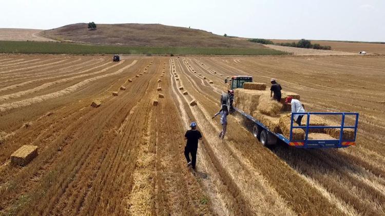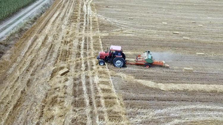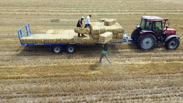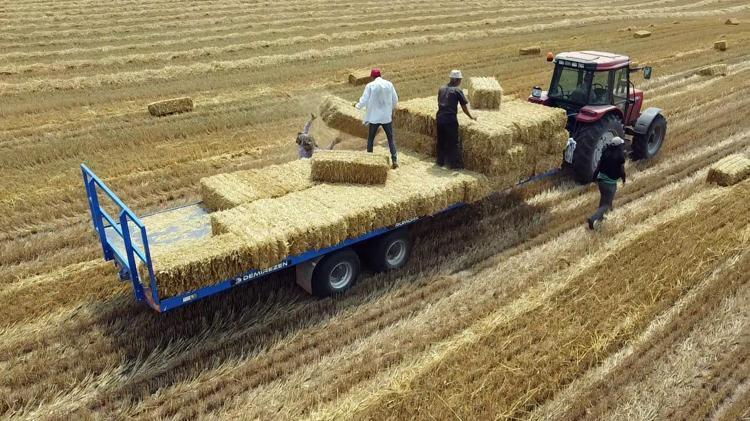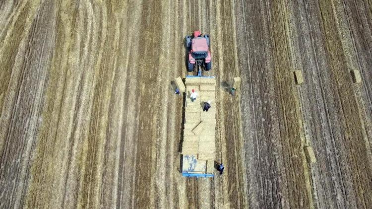 Buğday hasadı sonrası geriye kalan saplar, balyalanıyor. Buğday tarlalarında kalan saplar, traktöre bağlı balya makinesi ile 25 kilo ağırlığındaki saman balyalarına dönüşüyor.