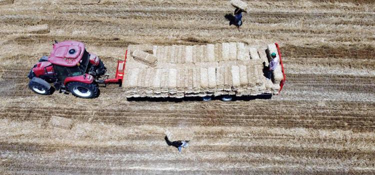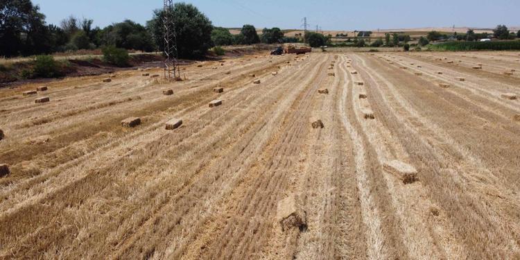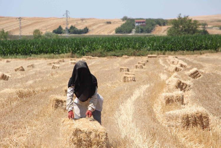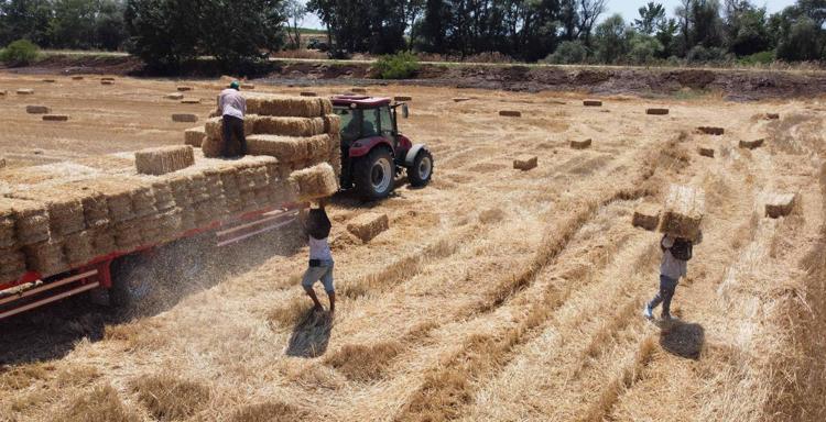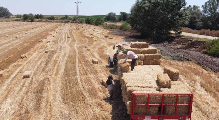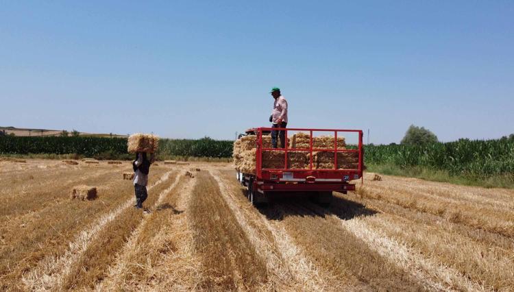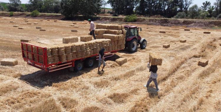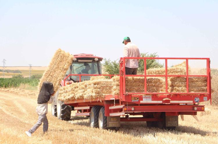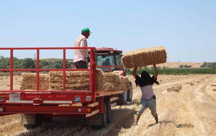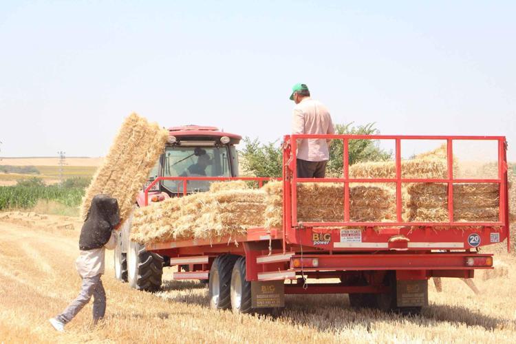 Kentte buğday hasadının tamamlandığı tarlalarda, bu kez balya işçilerinin zorlu mesaisi başladı. Buğdaydan geriye kalan saplar ise tarlalarda traktörlerde bağlı makinelerle, 25 kiloluk balya haline dönüştürülüyor. Balyalar, mevsimlik olarak bölgeye çalışmak üzere gelen işçiler tarafından traktörün çekicisine yükleniyor.