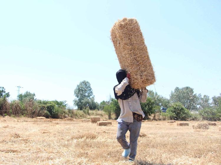 Kavurucu sıcakta balya toplayan Deniz Toprak (32), saat 08.00’de başladıkları mesainin gün boyu sürdüğünü söyledi. Toprak, "Sıcak falan dinlemiyoruz. 40 derece de olsa ağır ağır çalışıyoruz. Kimisine pahalı geliyor ama gelsinler tarlada bir gün çalışsınlar. Bu havada yediğine dikkat edeceksin. Yağlı yemeyeceksin, hafif yiyeceksin. Hava şartlarına bağlı olarak günlük 700 ile 1300 arasında balya taşıyoruz. Şu anda balya başı 20 liradan çalışıyoruz" dedi.