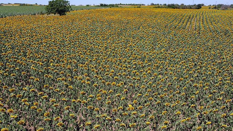 Türkiye’nin yağlık ayçiçeği ihtiyacının büyük bölümünü karşılayan Edirne’de, iklim değişikliğiyle birlikte yüksek sıcaklık ve yağışsız hava nedeniyle, ekili tarlalarda ürün kuruma noktasına geldi. Edirne Ziraat Odası Başkanı Hüseyin Arabacı, her yıl 15 Ağustos’ta başlayan ayçiçeği hasadının, kuraklık nedeniyle bu yıl erken başlayacağını söyledi.