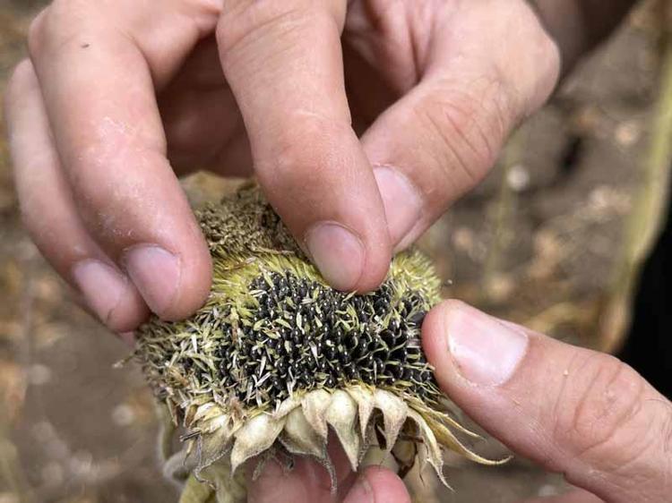 İlkbaharda mevsim normallerinde düşen yağışın, yaz aylarında yerini kuraklığa bıraktığını söyleyen Hüseyin Arabacı, “Sonrasında da çok yeterli yağış olmadı. Yani haziran ayında sadece hafif bir yağış aldık. O da lokal, belli köylerde oldu. Onun haricinde birçok yerde yağış alamadık. O yüzden de kış yağışı yeterli olmayınca, yağışlar biraz ara verince ayçiçeğin de kafa yapısı çok ufak kaldı. Dolayısıyla bu yıl geçtiğimiz yıl aldığımız verimi de alamayacağımız düşüncesine varıyoruz. Genel olarak baktığımızda yağışların çok yeterli gelmemesi ve şu an kafa yapısına da baktığımızda çok tatmin edici bir verim olacağını düşünmüyoruz. Çiçeklenme döneminden sonra hiç yağış almadı ayçiçeği. Yani en azından o dönemde kafa yapısı ufak da olsa çiçeklenme döneminden sonra bir yağış alsaydık tane besleme açısından faydası olurdu. Yani bir nebze olsun yine kafa yapısı ufak da olsa içini güzel doldurur, biraz olsun verimi etkilerdi. Ama maalesef ki bu yıl onu da alamadık” diye konuştu.