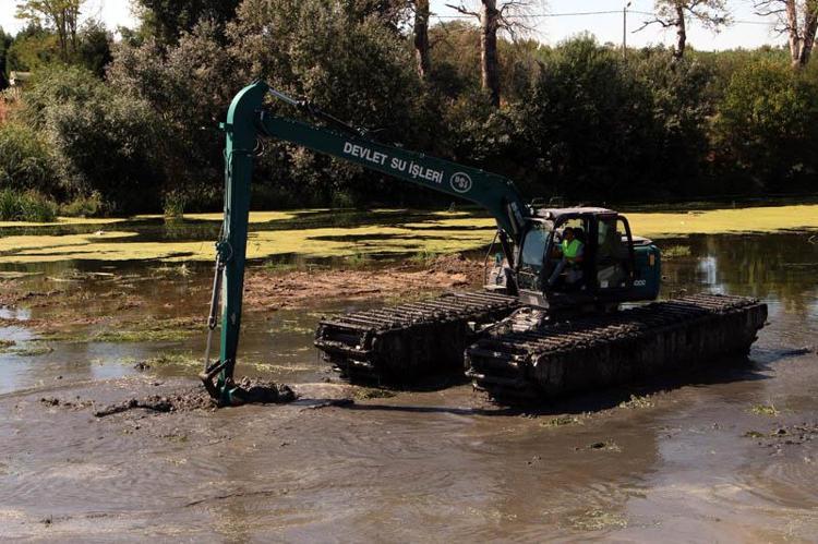 Edirne'de, Devlet Su İşleri (DSİ) 11'inci Bölge Müdürlüğü ekipleri tarafından, kurak geçen yaz ayıyla birlikte debisi düşen Tunca Nehri’nde, kepçe ve kamyonlarla yatak temizliği gerçekleştirildi.