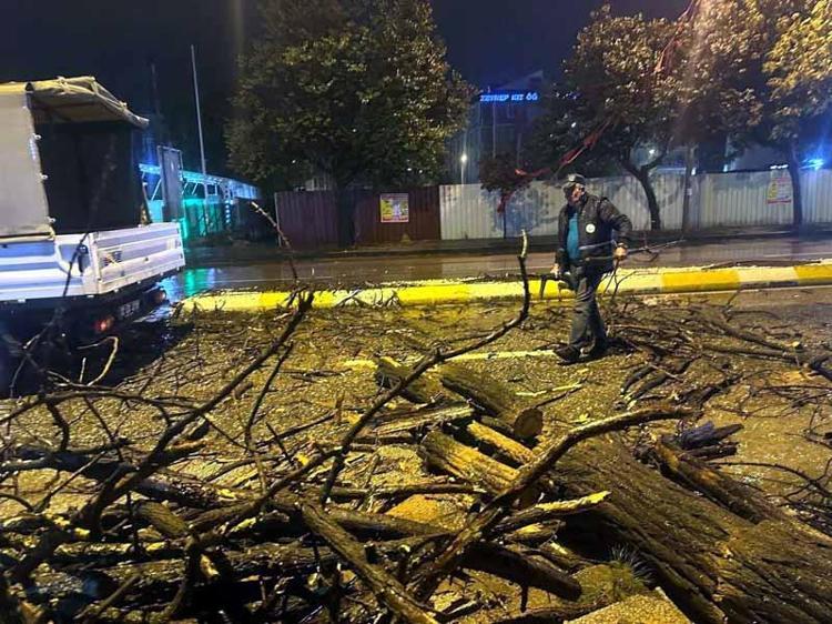 Gece saatlerinde yağışın etkisiyle Atatürk Bulvarı üzerindeki bir ağaç, caddeye devrildi. Vatandaşlar, durumu 112 Acil Çağrı Merkezi'ne bildirdi.