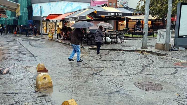 Sabah saatlerinde de etkili olan kuvvetli yağış, bazı cadde ve sokaklarda su birikintileri oluşmasına neden oldu.