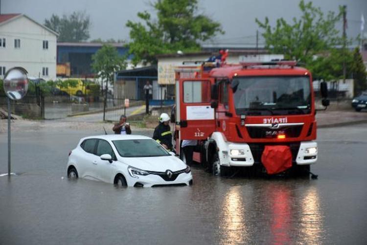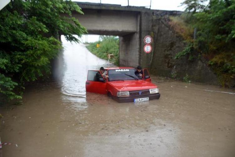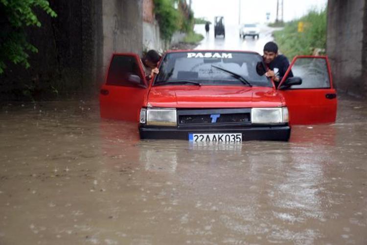 Edirne'de öğle saatlerinden sonra başlayan yağmur etkisini artırınca suyla kaplanan cadde ve sokaklarda bazı araçlar mahsur kaldı, evleri su bastı. Caddede suya gömülen aracında mahsur kalan bir kişiyi itfaiye ekipleri kurtardı.