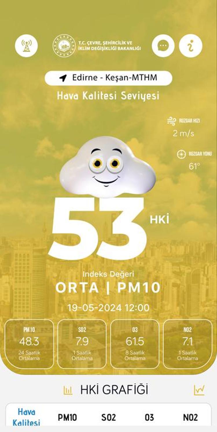 Dünya Sağlık Örgütü'nün metreküp başına 50 mikrogram olarak belirlediği partikül madde sınır değeri, ilçede 53'e yükselerek 'orta' değerlere çıktı. Toz taşınımın etkili olduğu ilçede, yağmurun yağması ile de araçların üzerinde çamur kalıntıları oluştu.