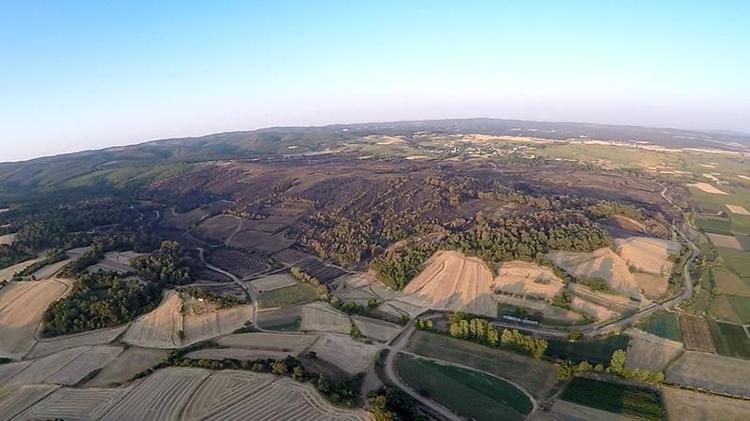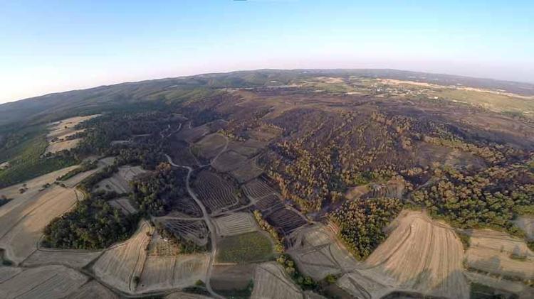 Edirne’deki orman yangınında zarar gören alanlar havadan görüntülendi