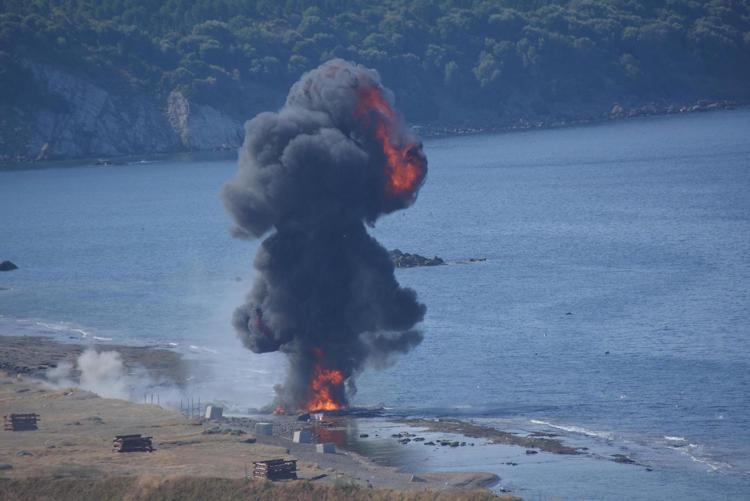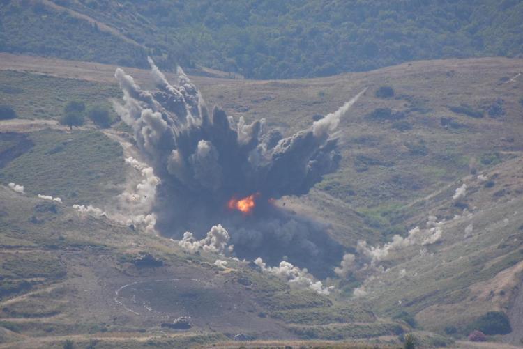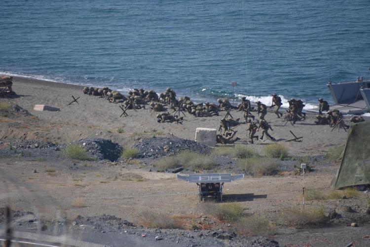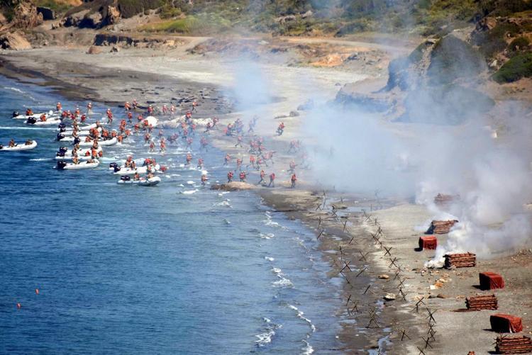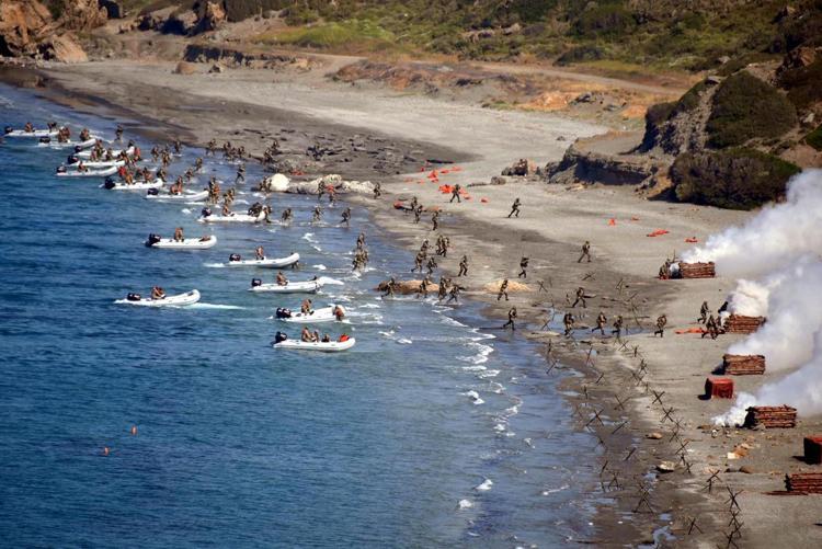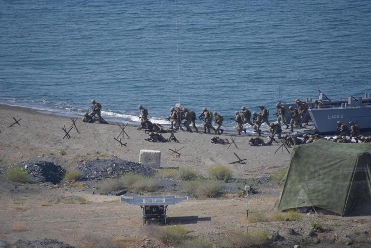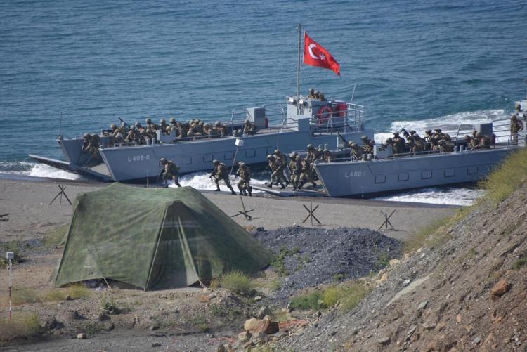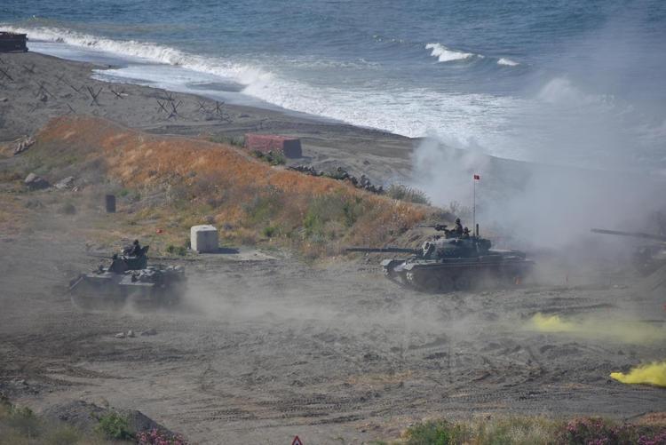 Çıkarma gemilerinin kapak indirmesiyle zırhlı araçlar ve OBÜS'ler de karaya çıkartıldı. Bu sırada hücum marşı çalındı. Savaş uçakları ve helikopterler, sortilerle önceden belirlenen hedefleri imha etti. Savaş uçaklarının, önceden belirlenen noktaları büyük bir başarıyla vurduğu tatbikatta, yakın noktalara top atışları yapıldı.