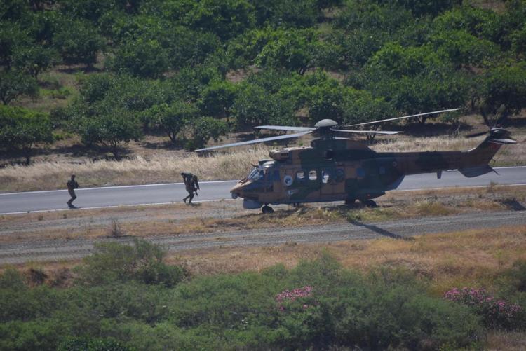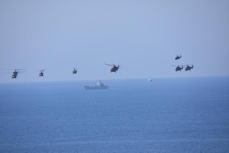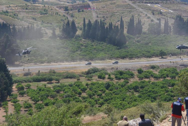 Tatbikatın bu bölümünde, savaş senaryosunda yaralanan askerler de helikopterlerle kurtarıldı. Nefes kesen helikopterli kurtarma bölümünü gözlemciler ilgiyle izledi. Bu anlarda amfibi çıkarması öncesinde de F4 savaş uçaklarıyla havadan bombardıman gerçekleştirildi. Karadan da top atışları yapıldı.
