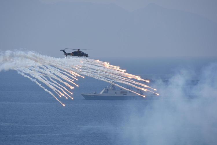 İlk olarak bu yıl ilk kez tatbikatta kullanılan, MİLGEM projesiyle yapılan TCG Büyükada top atışı yaptı. Ardından çok namlulu roketatarlar da atış yapılması planlanan bölgeye helikopterlerle taşındı.