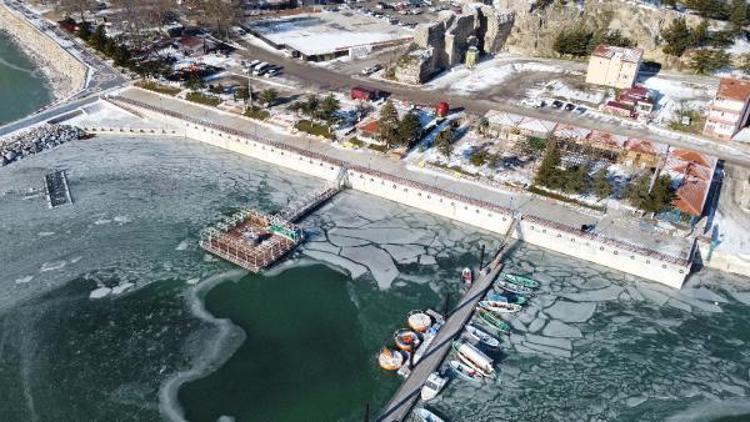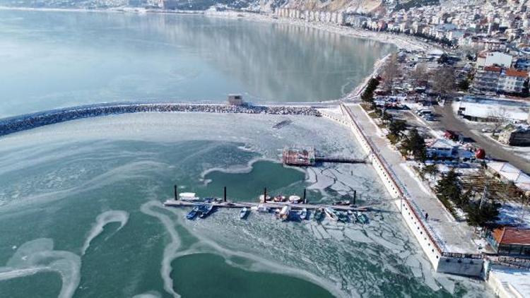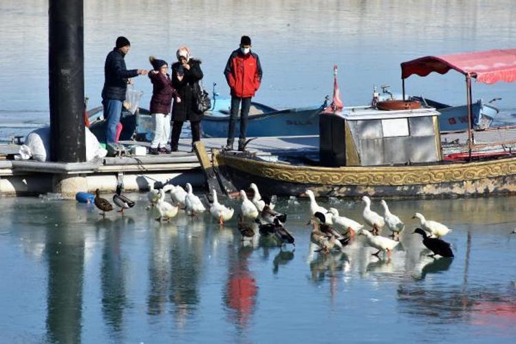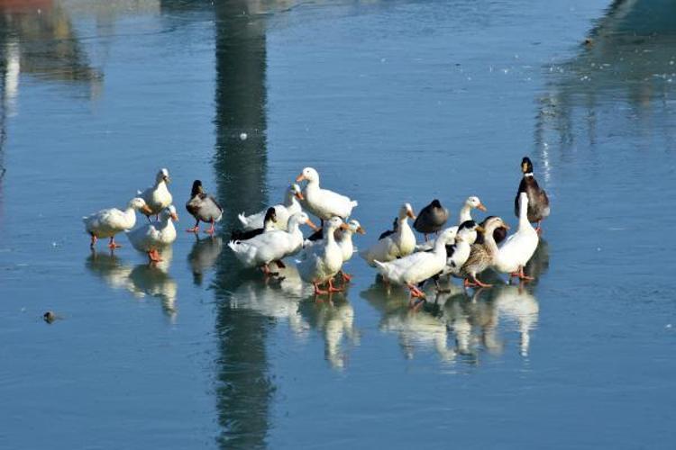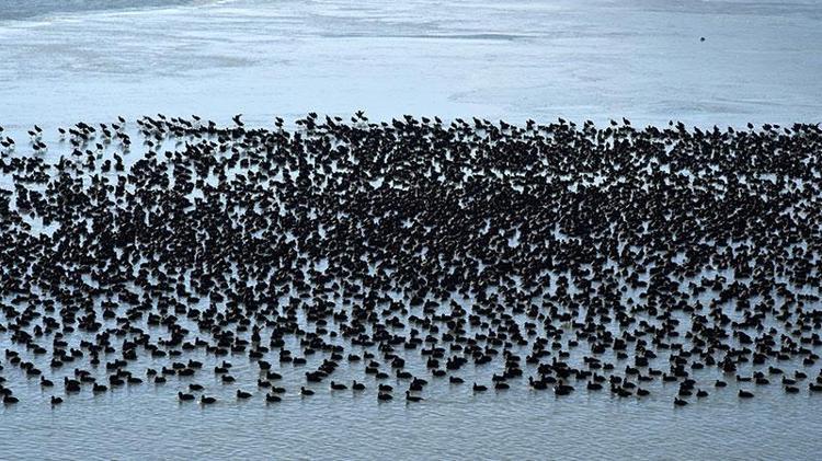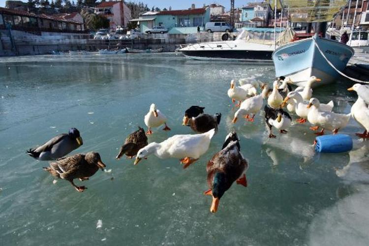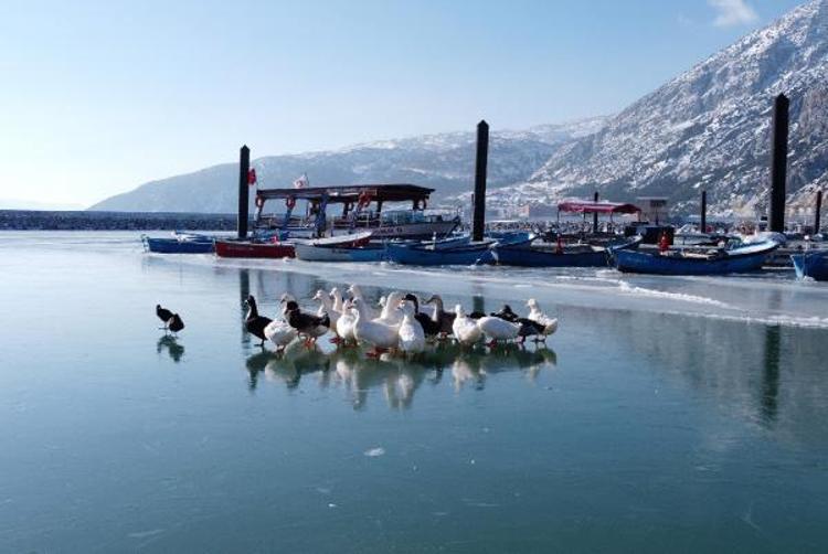 Gölün buz tutmayan bölümlerinde ise yüzlerce kuşun yüzdüğü görüldü.