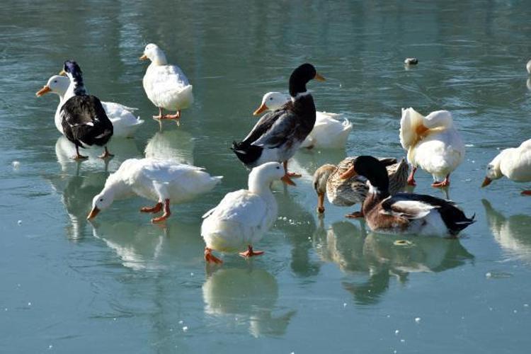 Buz tabakası üzerindeki ördekler, havadan görüntülendi.