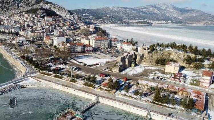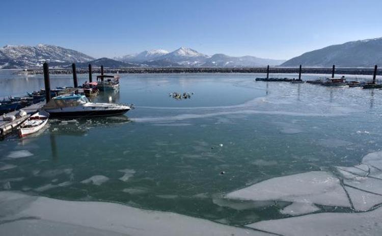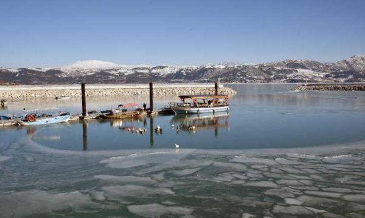 Türkiye'deki 454 farklı kuş türünden 225'inin barındığı, Türkiye'nin 2'nci büyük tatlı su gölü olan Eğirdir Gölü, soğuk havanın etkisiyle kısmen buz tuttu.