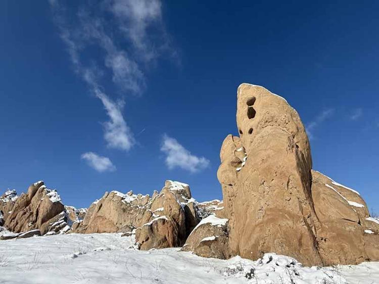 Eğribucak Kayalıkları'nda kış manzarası; Mars'a kar yağmış gibi