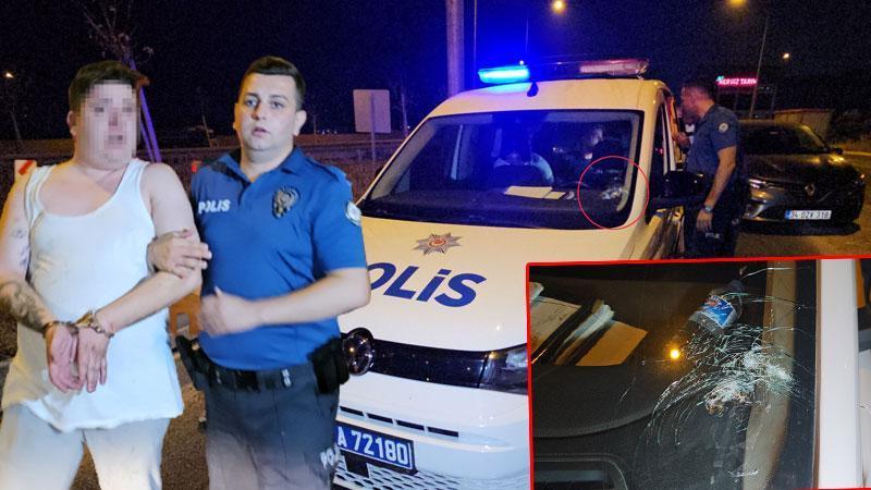 Otoyolda kendisini takip eden polis aracına sert cisimler attığı öne sürülen otomobildekiler, tüm uyarılara rağmen kaçmaya devam etti.