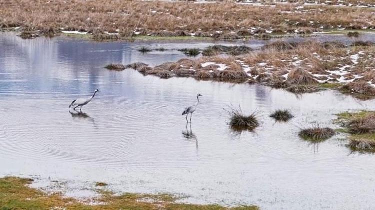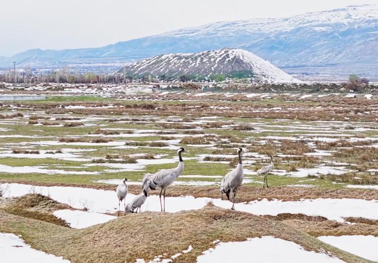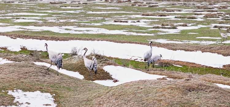 Erzincan'daki Ekşisu Sazlığı'nda, koruma altındaki turnalar, yavrularıyla birlikte görüntülendi.