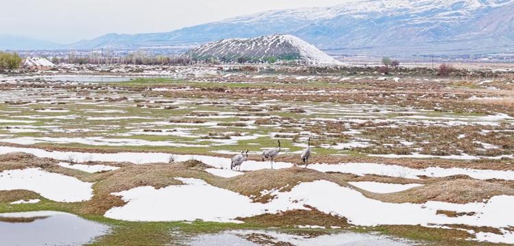 Ekşisu Sazlığı’nda turnalar, yavrularıyla görüntülendi