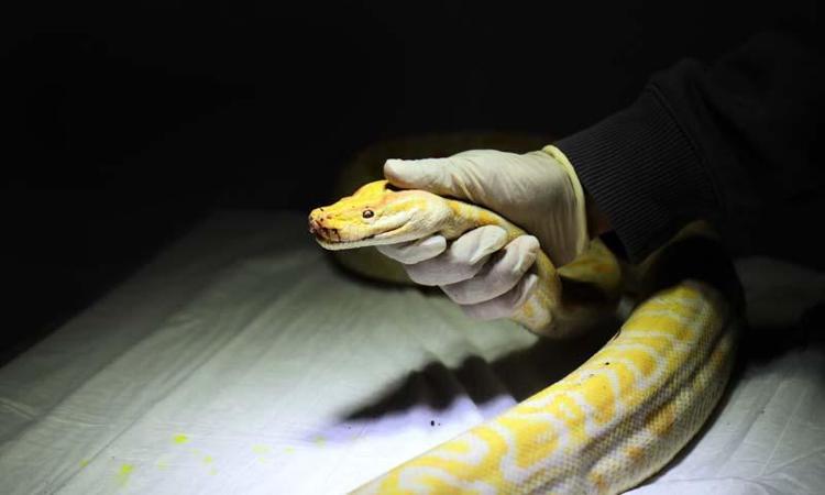 Türkiye'ye kaçak yollarla sokulduğu tespit edilip, Tarım ve Orman Bakanlığı ekiplerince el koyulan albino piton, Antalya Büyükşehir Belediyesi Doğal Yaşam Parkı'na teslim edildi. Kontrolden geçirilen piton, karantina sonrası sürüngen evinde yaşayacak.