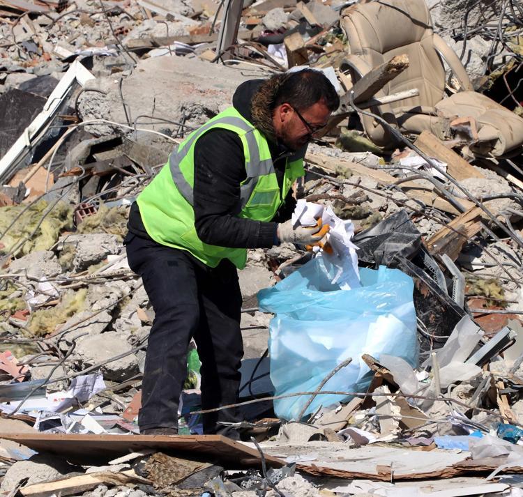 Enkaz altında bulunan evrakla ilgili açıklama yapan Gürbüz, "Burada görmüş olduğunuz enkazın içinde kırtasiye malzemeleri var. Bu kırtasiye malzemeleri tüm kamu idarelerinin vazgeçilmezidir.