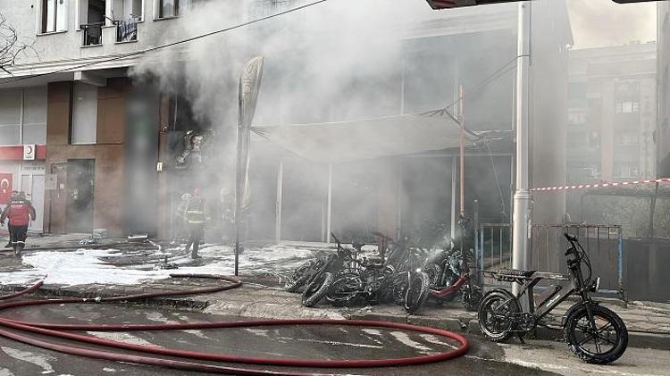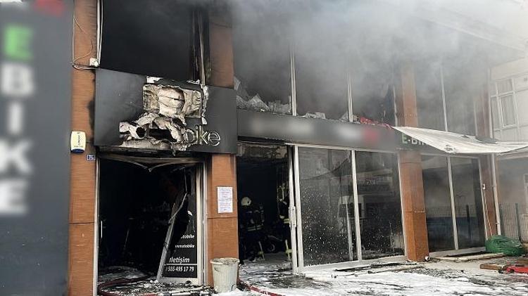 Elektrikli bisiklet tamiri ve satışı yapılan iş yerinde yangın