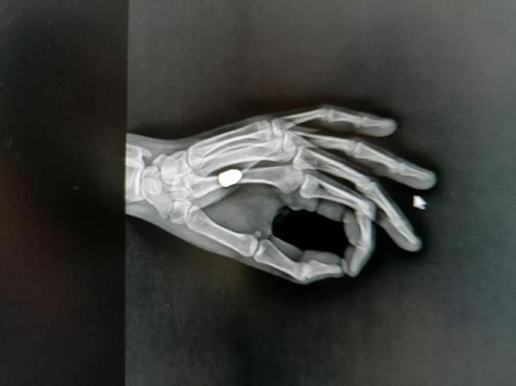 Sürmene Devlet Hastanesi Başhekimi Osman Yoloğlu, röntgen filminde mermi tespit ettiklerini belirterek, "Elinde ağrı hissettiğini söyleyen hastamızın elinde de bir yarası vardı. Yaptığımız tetkikler sonrası elinde, mermi çekirdeği olduğunu tespit ettik. Hastamızı hemen ameliyata aldık ve elinden mermi çekirdeğini çıkarttık. Durumu, çok şükür iyi” diye konuştu.