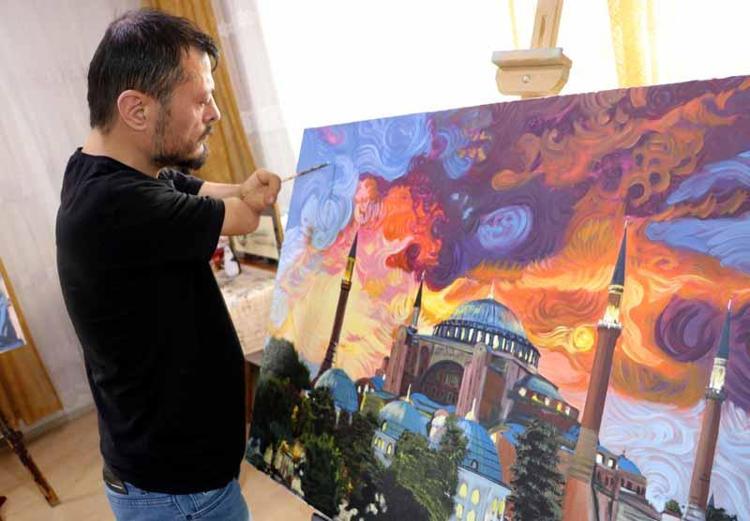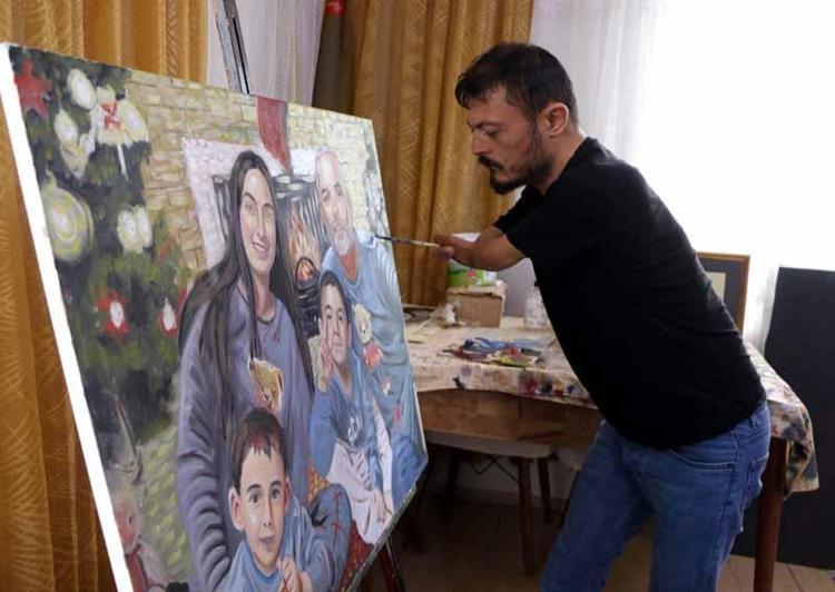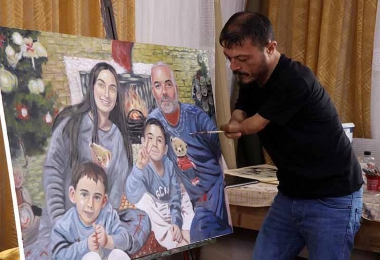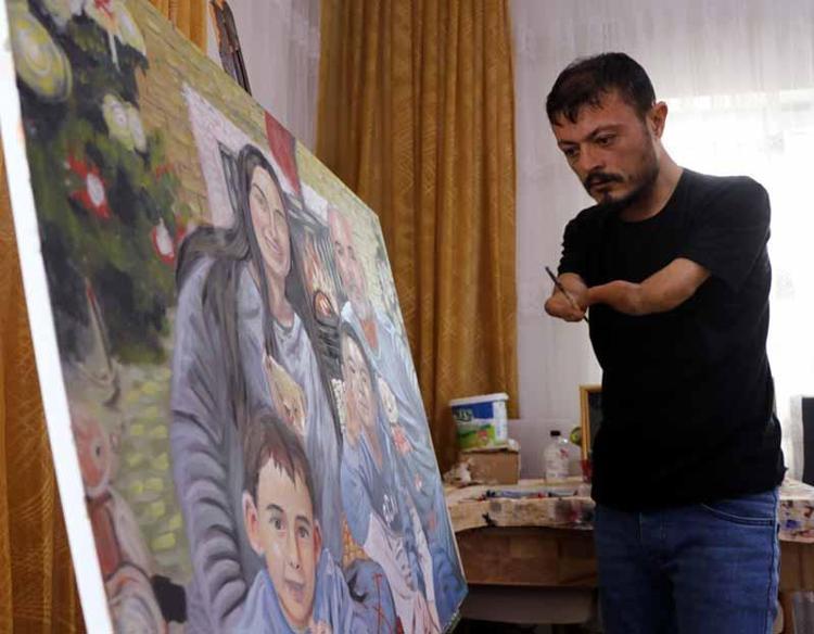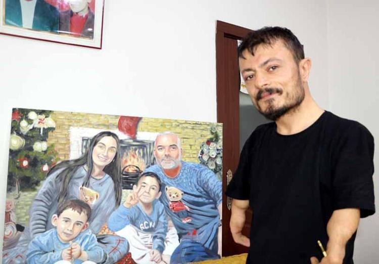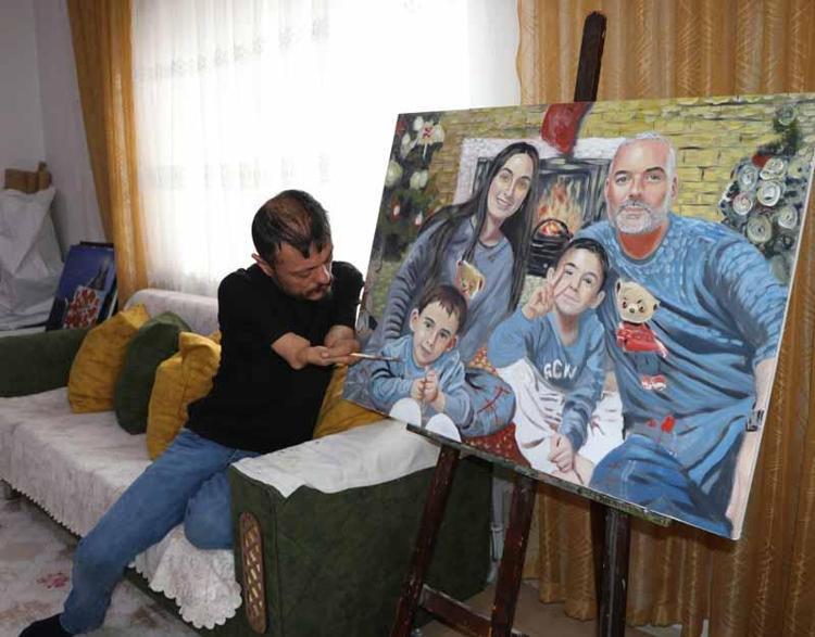 Elleri olmayan ressam, 'Sevgililer Günü' için aldığı siparişleri hazırlıyor