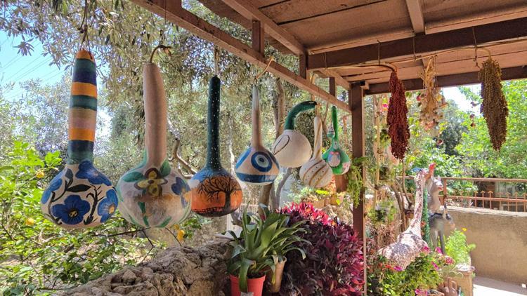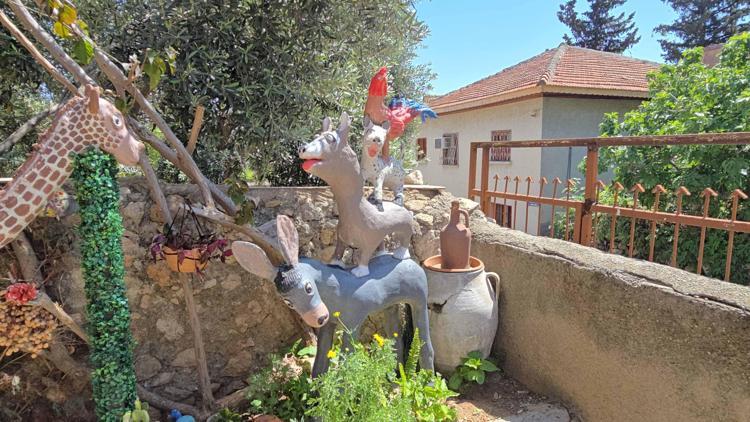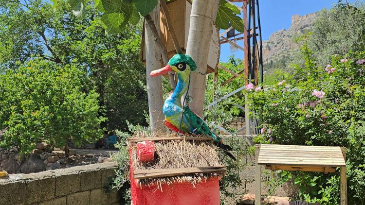 Emekli el işi öğretmeni, ürettiği objeleri bahçesinde sergiliyor