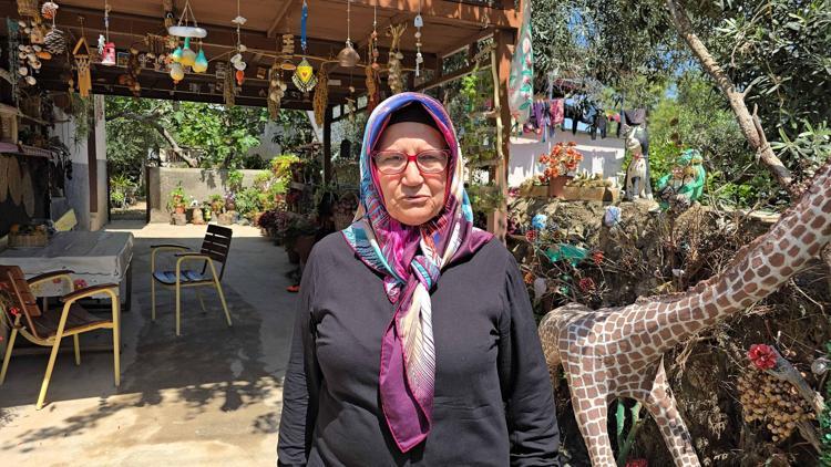 Adana'nın Kozan ilçesinde emekli el işi öğretmeni Nadire Kuzu (64), atıl malzemeleri objelere dönüştürerek evinin bahçesini açık hava müzesine dönüştürdü.