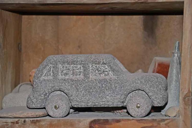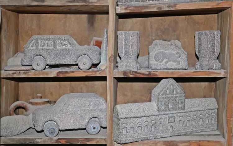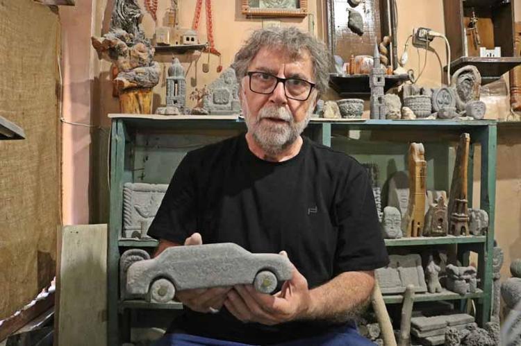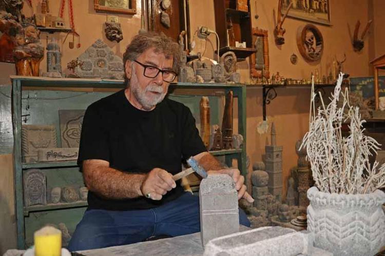 Diyarbakır’da, emekli Fransızca öğretmeni Mahmut Nurettin Medyelioğulları (72), 21 yıldır Sur ilçesinde açtığı 10 metrekarelik küçük dükkanda, merak saldığı taş işlemeciliği ile 550 civarında obje üretti. Sönmüş volkanik dağ olan Karacadağ'dan topladığı taşlarla, sadece çekiç ve keski gibi el aletleri kullanıp objeler üreten Medyelioğulları, bu kez de bazalt taşından otomobil, cip ve kamyonet gibi araçların figürlerini yapmaya başladı.