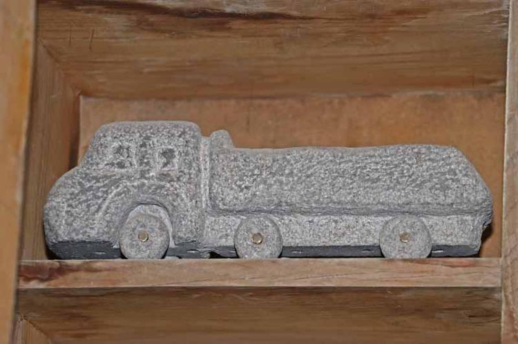 Yaptığım en zor ve en önemli şey o bence. Duvar saati yaptım, lamba yaptım, havan, değişik heykeller yaptım. Bir süredir de araçlar üzerinde çalışıyorum. Kamyon, cip, otomobil gibi araçlar. Araçlarda en zor olan yer tekerlekler. En küçük haliyle çıkartmaya çalıştım. Tabii makine kullanmıyorum, bunları el aletleriyle yapıyorum. Mümkün olan en küçük şekilde yapmaya çalıştım. Vatandaşların ilgisi çok. Satın almak isteyenler çok oldu.