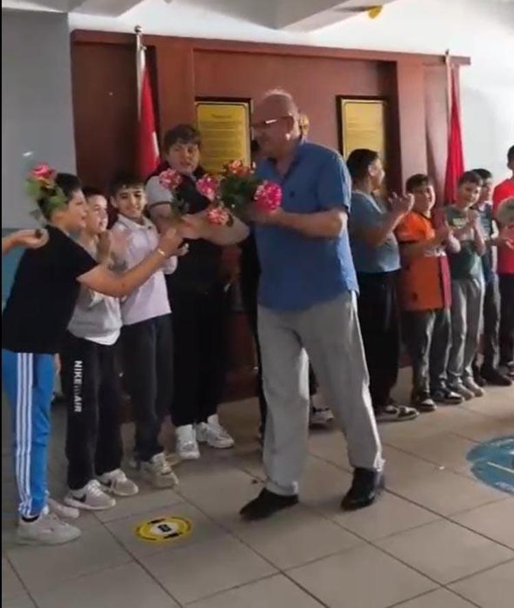 Emekli olan okul müdürüne öğrencilerinden çiçekli, müzikli veda
