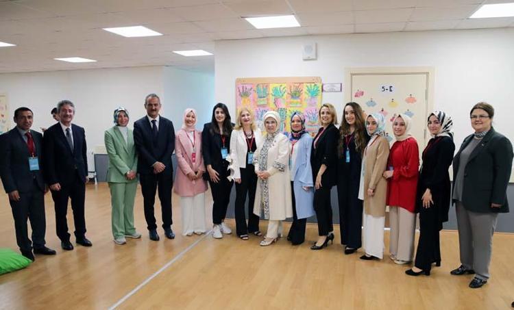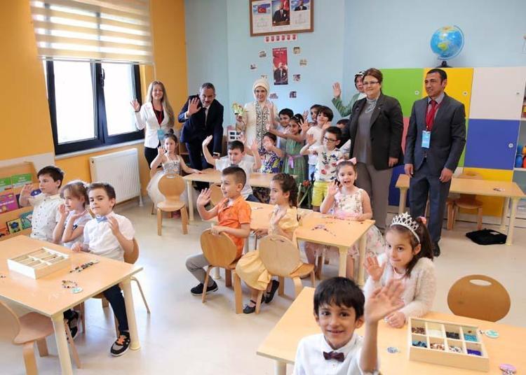 Emine Erdoğan, “Uzmanlar, insanın zihinsel, duygusal, sosyal ve bedensel gelişiminin yaklaşık yüzde 70'inin 0-6 yaş arasında tamamlandığını söylüyorlar. Hayatımızın ilk 6 yılı yaşamımızın geri kalanının belirleyicisi konumunda. Her anne babanın en büyük hayali evlatlarının okuması, okullarını bir bir tamamlamasıdır. Anaokuluna gitmiş çocukların ileriki yıllarda okula devam etmede olumlu tutum sergilediğini hepimiz biliyoruz. Hatta sadece akademik hayatlarında değil, iş hayatlarında da daha istikrarlı yetişkinler oluyorlar.  Anaokulları eğitim ve fırsat eşitliğinin en hızlı gerçekleştiği yer. Erken eğitimin olumlu etkileri dezavantajlı ailelerin çocuklarının çok daha yüksek faydalar sağlıyor. En başta sonraki kuşakların dezavantajlı kategorisine girme ihtimali zayıflıyor. Eğitim kişinin hayat yolunda emin adımlarla yürümesini sağlarken eş zamanlı olarak toplumumuza aydınlık ve güzel bir gelecek hazırlıyor" ifadelerini kullandı.