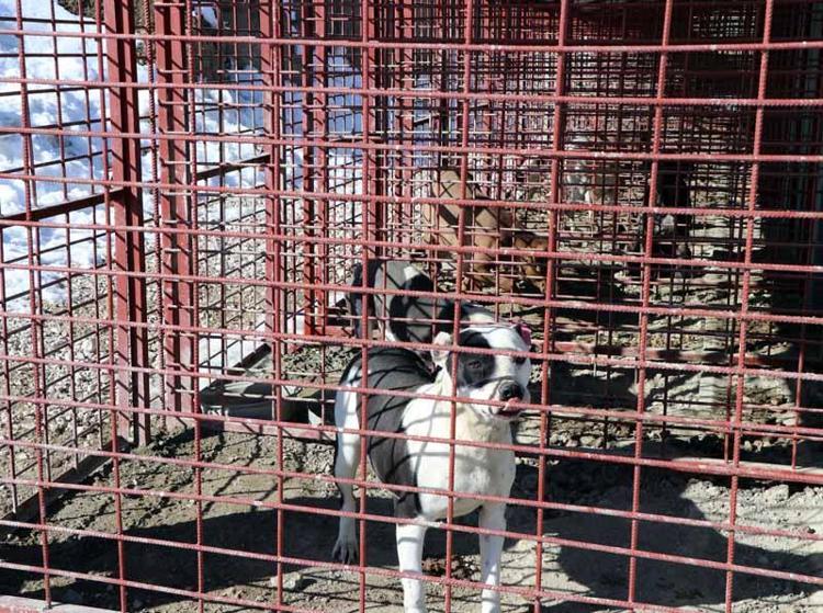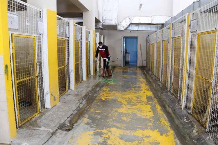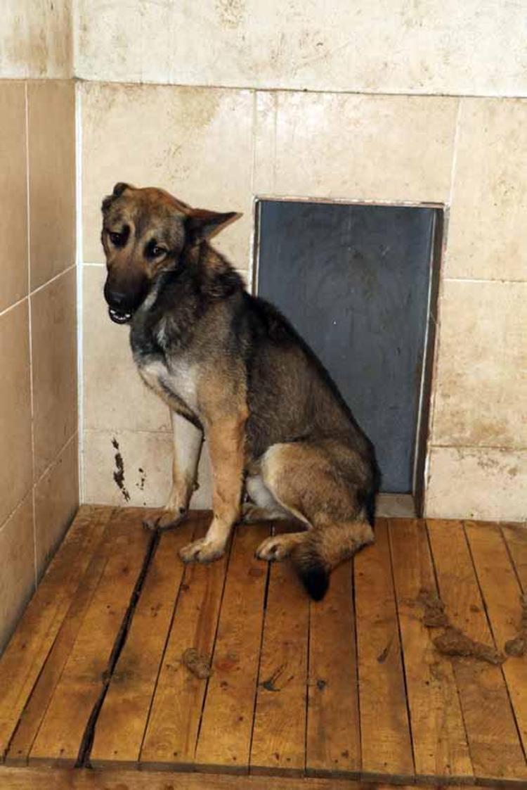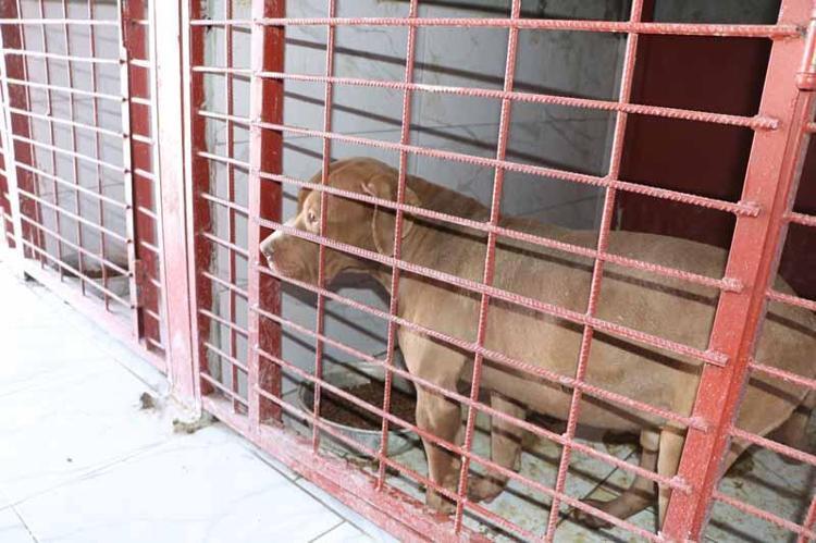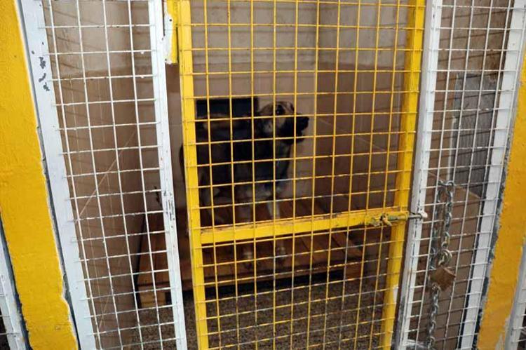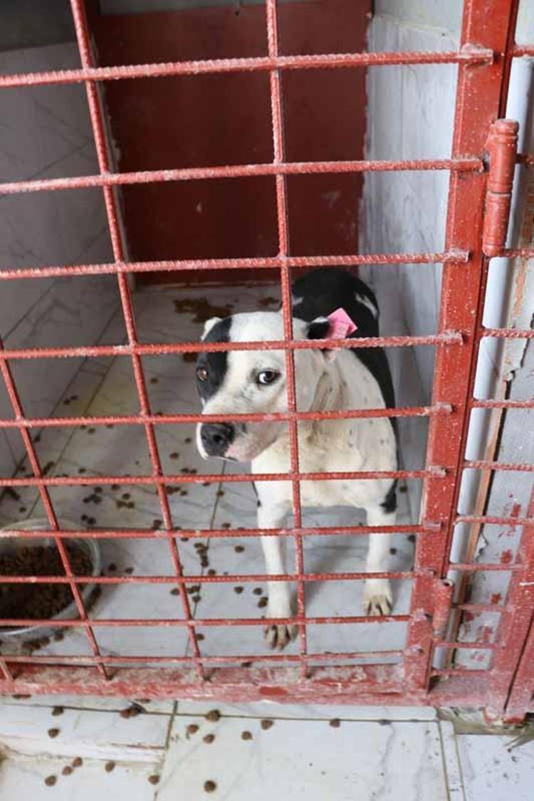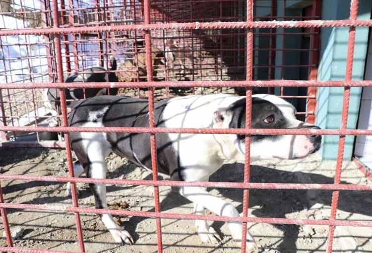71'i yasaklı ırk olmak üzere 450 köpek ile 100 kedinin bulunduğu barınakta, köpek bir kafeste tek başına tutuluyor. Uzmanlarca durumu gözlemlenen köpek, bundan sonra yaşamını barınakta geçirecek.